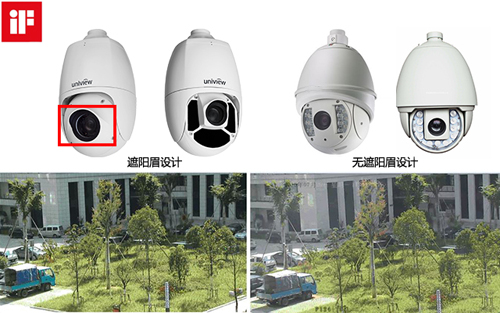 图:带“遮阳帽”的宇视球机(左)与业界普通球机图像效果对比