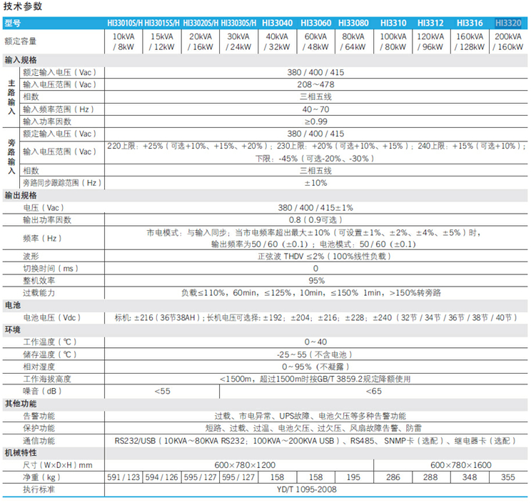 ·宽广的输入电压范围达208V~480V,避免频繁地切换至电池供电,适应于电力环境恶劣的地区。